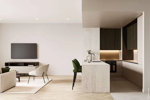 1 Wood Residence 2 Dubai Islands Floor Plans are beautifully engineered and designed. From studio, 1 & 2 bed apartments, each unit has been designed with a modern structure & high-quality finishings, spacious room sizes, big windows and spacious balconies.