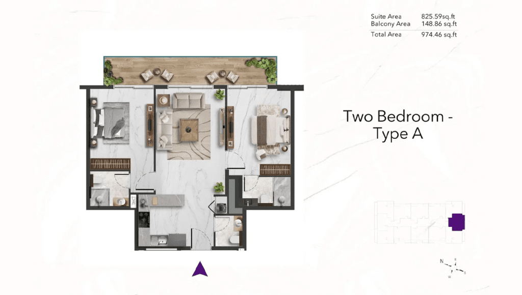 Siroya Amethyst at Majan has various fairly designed floor plans in 2 bed apartments option. Each of such units flows well-through open layouts with modern kitchens and finished well minimizing between space and functionality. All designs enjoy ample natural light and have integrated smart home features, making these apartments a delightful confluence of style, comfort, and innovation-ideal for families and investors keen on quality spaces for living.