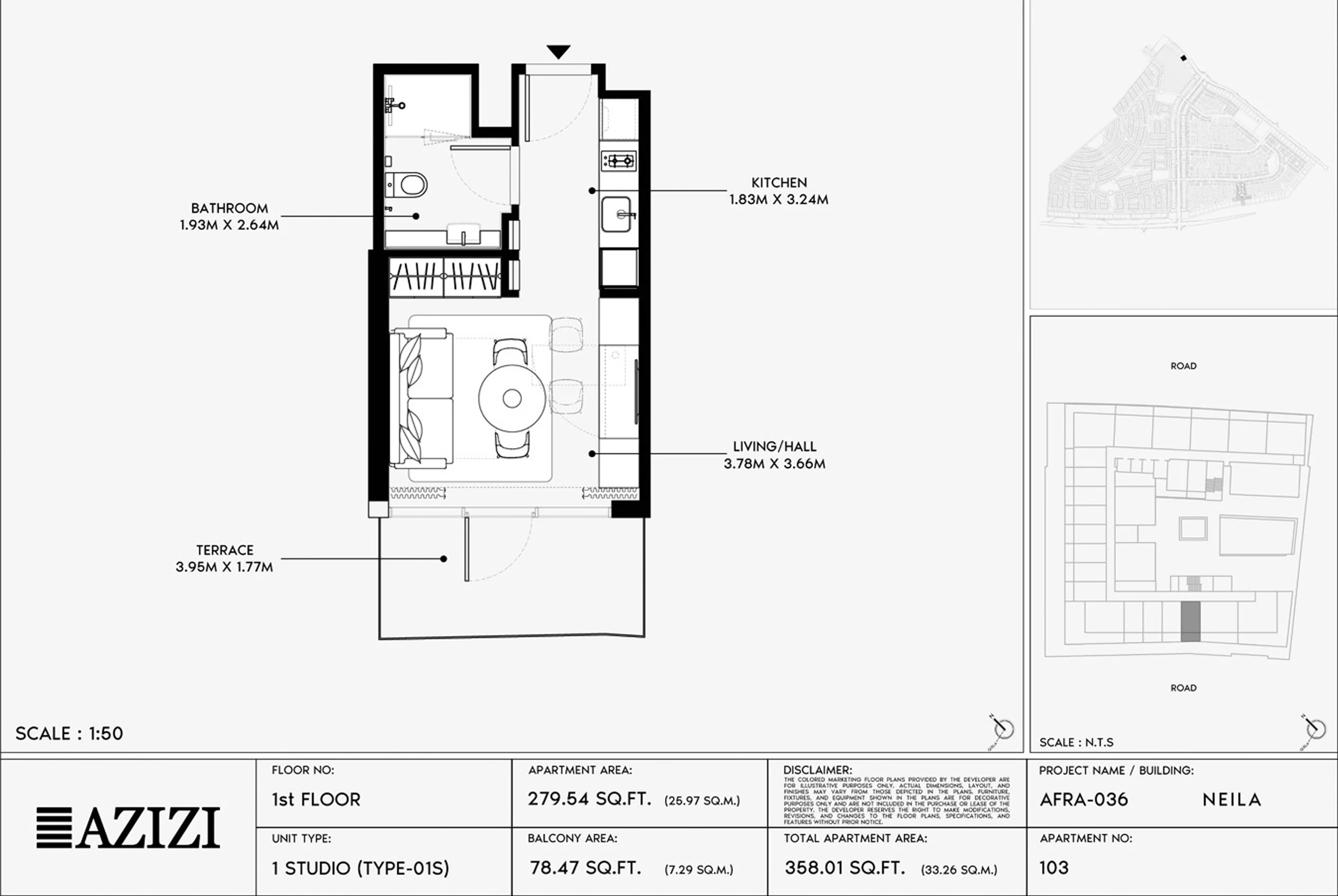 The studio and 1 bedroom apartments available here in a range from 672 to 1,198.57 Sq Ft are best suited for individuals and couples. The Azizi Neila At Al Furjan floor plan features new-age architectural design and style that emphasizes space optimizing, light and visibility. The finishes used in constructing the apartments are of high quality, and the provision of modern facilities adds to the luxury of the apartments.