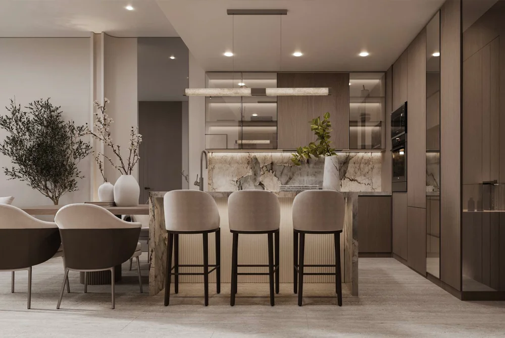 Entering Beverly Grande is like entering a boutique hotel rather than a residential lobby. It’s a destination rather than a transition space. Whether you are meeting guests or passing through, the Grande Lobby will wrap you in comfort and effortless style. It whispers luxury with no voice, leaving a first impression of timeless beauty. Earthy textures, warm ambient lighting and graceful curves make this a grounding yet elevated space.