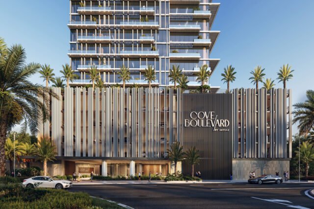 Cove Boulevard is a mixed-use residential and office tower in the Dubai Land Residence Complex (DLRC) in Dubailand, developed by Imtiaz Developments. The project includes stylish, fully furnished studios, 1-, 2-, and 3-bedroom apartments, with unit sizes ranging from approximately 360 sq ft to 1,400 sq ft. Prices start from around AED 650,000, and the building will be completed by Q4 2028Residents will enjoy a host of upscale amenities, such as a rooftop infinity pool, fully equipped gym, clubhouse, kids’ play area, BBQ zones, Zen garden with jacuzzi, and outdoor yoga spaces. The development also features smart home technology and secure infrastructure, complemented by seamless access to major highways, shopping centers, and the airport—making it both a convenient and luxurious living option in Dubai