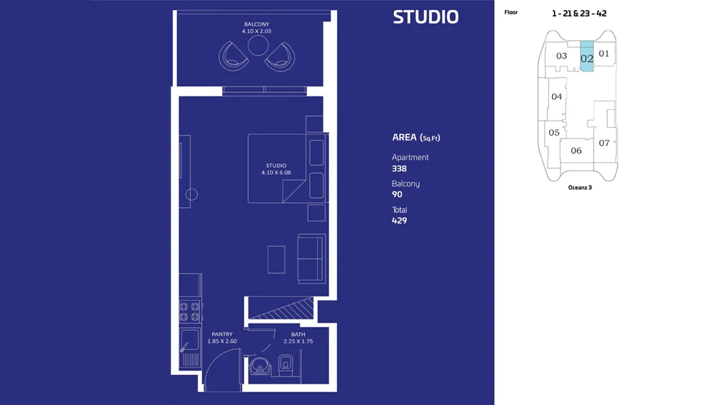 Danube Oceanz Tower 3 offers the best options for homebuyers and investors, with Studio, 1, 2 & 3 Bedroom apartments ranging from 1,200 to 1,800 sq. ft. These apartments come with a private pool to create a resort-style living atmosphere. The interiors of these apartments are designed by the renowned designer Tonino Lamborghini Casa and equipped with modern fittings, fixtures, and spacious floor plans, among other features.