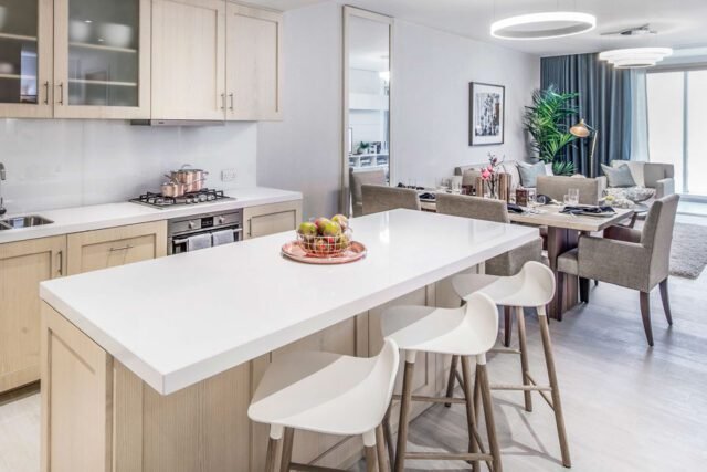 This boutique residential development brings an elevated living experience to JVC, combining stylish design, functional layouts and a resort-style amenity set. Located in a prime part of JVC and developed by Ellington Properties, the project features a selection of studios, 1- and 2-bedroom apartments, each finished to a high standard with light wood accents, white joinery and quartz worktops.