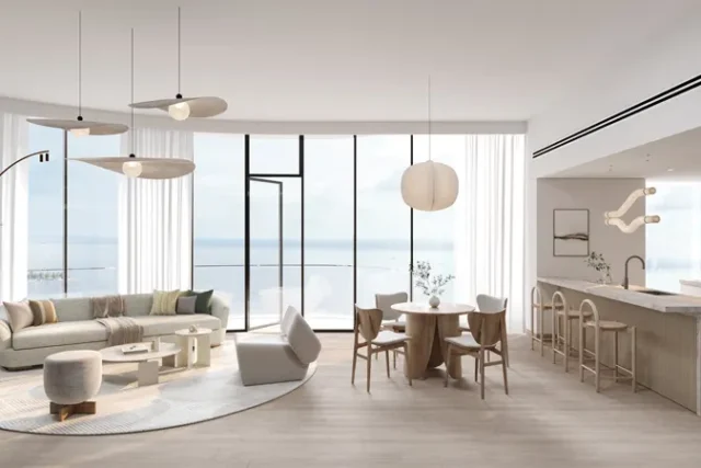 The residences are defined by contemporary architecture — floor-to-ceiling windows, generous balconies or terraces, and premium finishes that bring in natural light and frame sweeping panoramic vistas of greenery and water. The location is especially strong: within minutes of the Al Hamra Golf Club, Al Hamra Mall, the marina, and waterfront amenities — delivering both lifestyle and convenience.