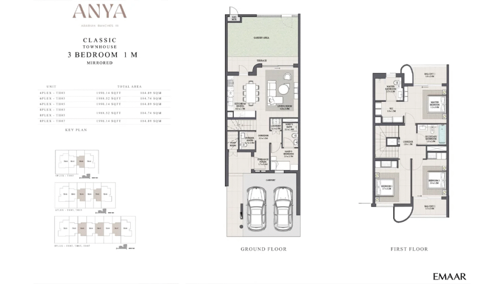 Emaar Anya offers a variety of thoughtfully designed 3 and 4-bedroom townhouse floor plans. Each layout is meticulously crafted to maximize space and natural light, creating comfortable and functional living spaces with modern amenities and stylish interiors, ensuring a luxurious living experience.