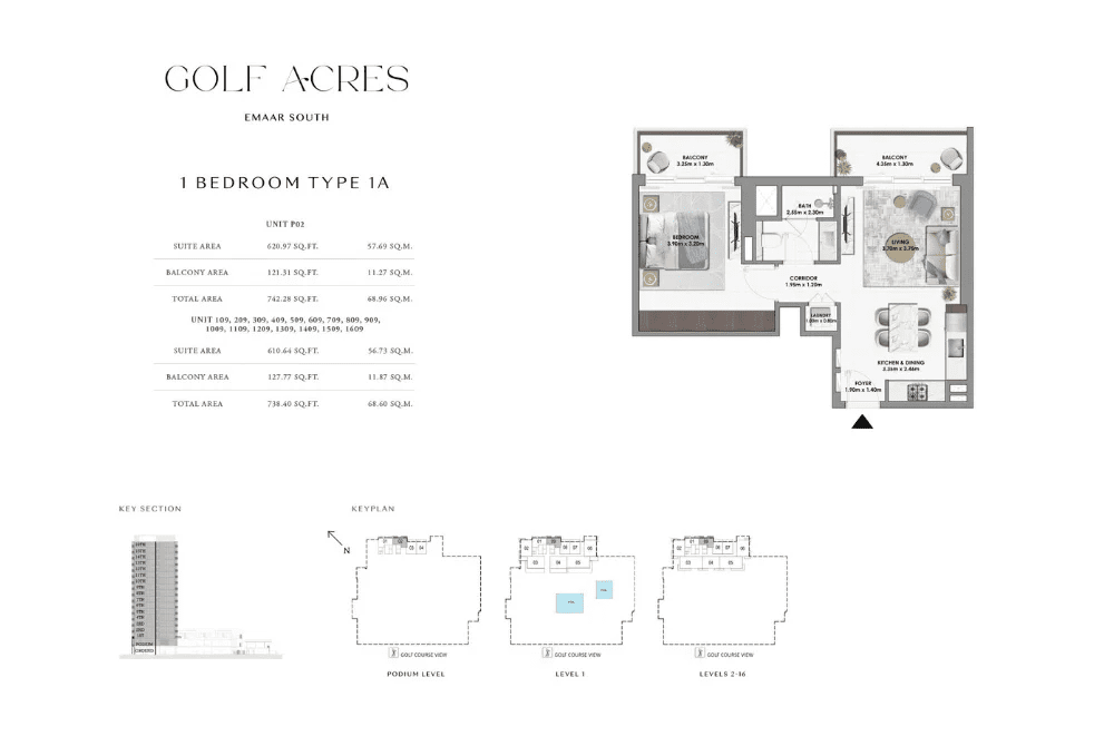 Emaar Golf Acres floor plans offer a spacious layout as 1, 2 & 3 bed apartments and 3-bed townhouses. All are designed to provide ample room for comfortable living.