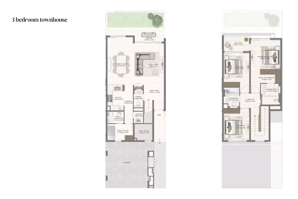 Floor plan of Emaar Greenpoint 2 townhouses offers a range of thoughtfully designed 3 & 4 bed residences to suit diverse lifestyles. Each residence emphasizes spacious, flowing layouts, featuring open-plan living areas and floor-to-ceiling windows that showcase the scenic golf course views. Modern kitchens are appointed with high-end finishes, blending functionality and style, while luxurious bathrooms display meticulous attention to detail. The floor plans maximize natural light and enhance connectivity between living spaces, creating a warm and airy ambiance residents will appreciate.