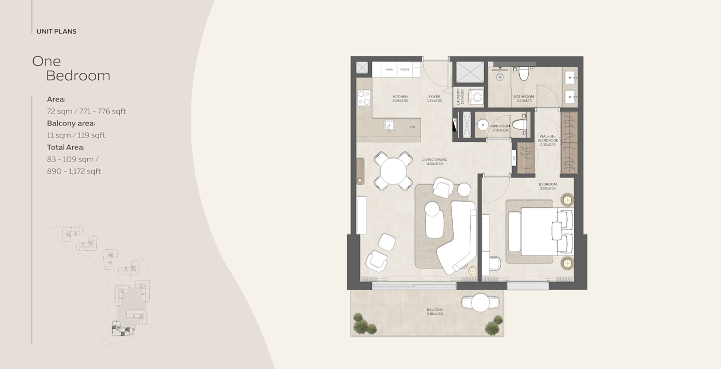 Residents will enjoy a walkable, nature-focused community with shaded paths, green open spaces, water features and health-oriented amenities—such as yoga decks, fitness studios, multiple pools and children’s play zones. Strategically positioned minutes from Al Wasl Plaza and key transport links, it offers both a serene lifestyle and investment potential.
