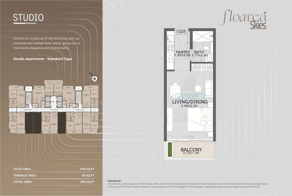 Floarea Skies apartments floor plan presents a range of luxury apartments in different sizes & layouts designed to suit diverse preferences. Each residence is meticulously planned to maximize space and natural light and features a spacious balcony and floor to ceiling windows, ensuring a seamless connection to the outdoors.