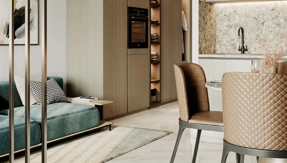 It has floor plans that are virtually designed with elegance and functionality. You will find premium studios, 1-, 2-, and 3-bedroom apartments which are large and allow lots of light in. Every design is carefully crafted with comfort at its core, while modern touches echo the luxury of the Franck Muller brand. The home of your dreams awaits!