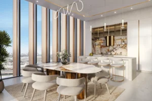 Ginco One Residence Floor Plans offer studios, 1 & 2 bed apartments and 3 & 4 bed penthouses with modern specifications, branded fittings & fixtures, spacious room sizes, floor to ceiling windows and balconies.