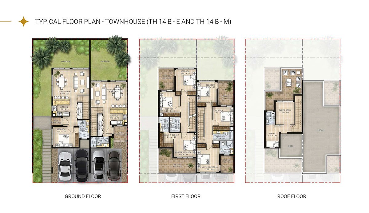 The floor plans for Greenwoods at DAMAC Hills—offering spacious 3- and 4-bedroom townhouses—are meticulously designed to suit modern family lifestyles. Most units span approximately 1,485 to 2,992 sq ft, delivering generous interiors that incorporate open-concept living areas, stylish kitchens, and expansive en suite bedrooms. Each layout also includes private backyards—some extending up to 15 meters—ideal for outdoor relaxation and family gatherings. These townhouses blend clean architectural lines, premium finishes, and abundant natural light, creating a harmonious balance between comfort, functionality, and aesthetic appeal