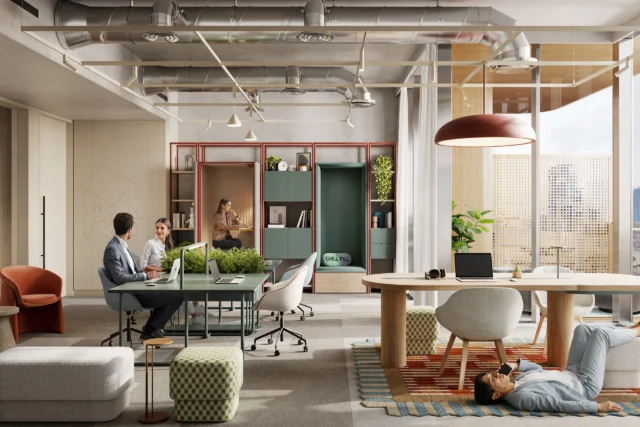 • Flexible office layouts: modular collection + “Lofts Collection” (double-height offices, walk-in closet, pantry, rest area).