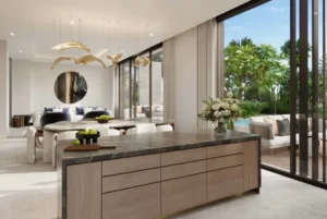 The setting in each residence epitomizes contemporary open plan living, with European brand appliances being premium and hardwood floors being porcelain countertops, along with tremendous glazing for soaking the interiors in natural light.