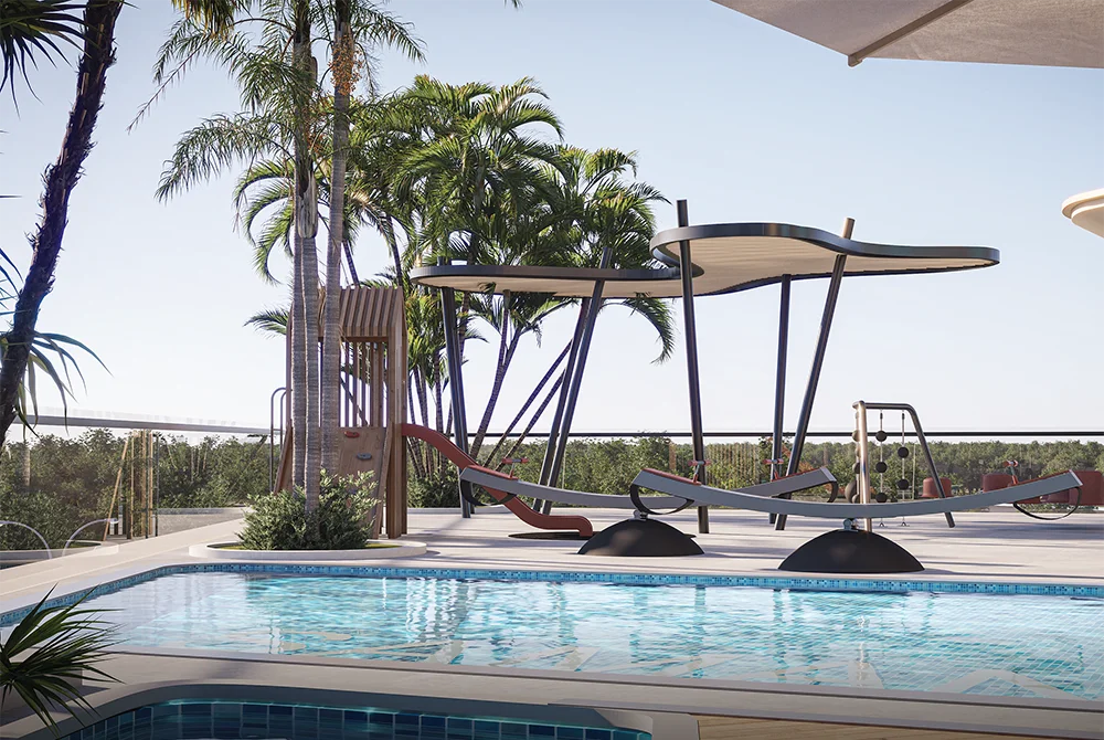 Designed for sustainability and comfort, Barari Heights masterplan guarantees a contemporary and environmentally responsible way of life by combining smart home technologies and energy-efficient living solutions with Among the opulent facilities the building provides are modern fitness centers, jogging paths, kids’ play areas, and an infinity pool modeled like a resort.
