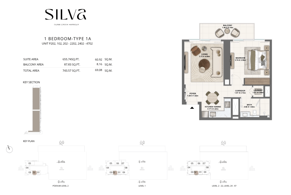 Emaar Silva at Dubai Creek Harbour floor plans are designed with plenty of space for comfortable living and presents luxury living spaces in different sizes and layouts. Each unit has been designed with maximum space utilization and complete privacy.