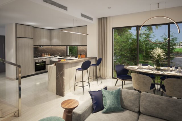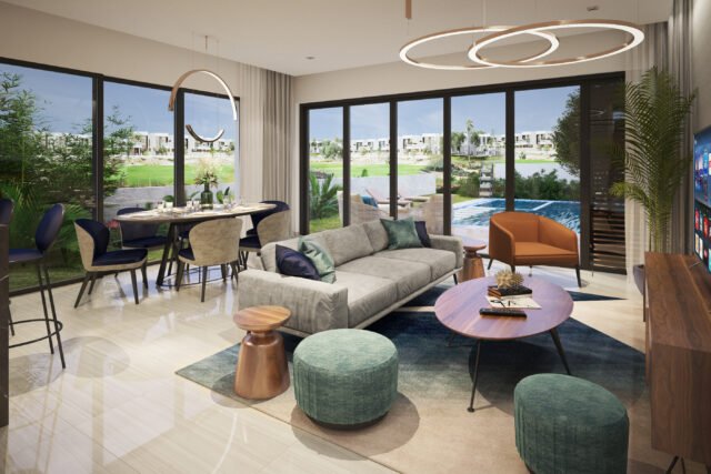 Description: A gated collection of luxury villas and townhouses (3–6 beds), Silver Springs offers modern architecture with spacious layouts, private gardens, and direct golf-course and community park views. Developed by DAMAC Properties, it provides an exclusive living environment set amidst championship golf, lush greenery, and resort-style amenities.
