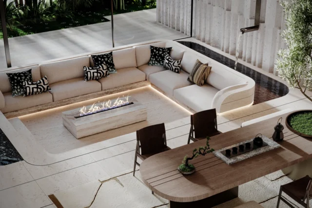 - Architectural style inspired by the island’s natural curves and coastal modernism