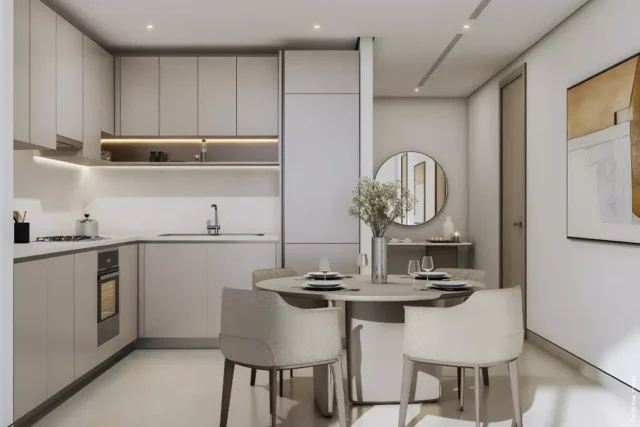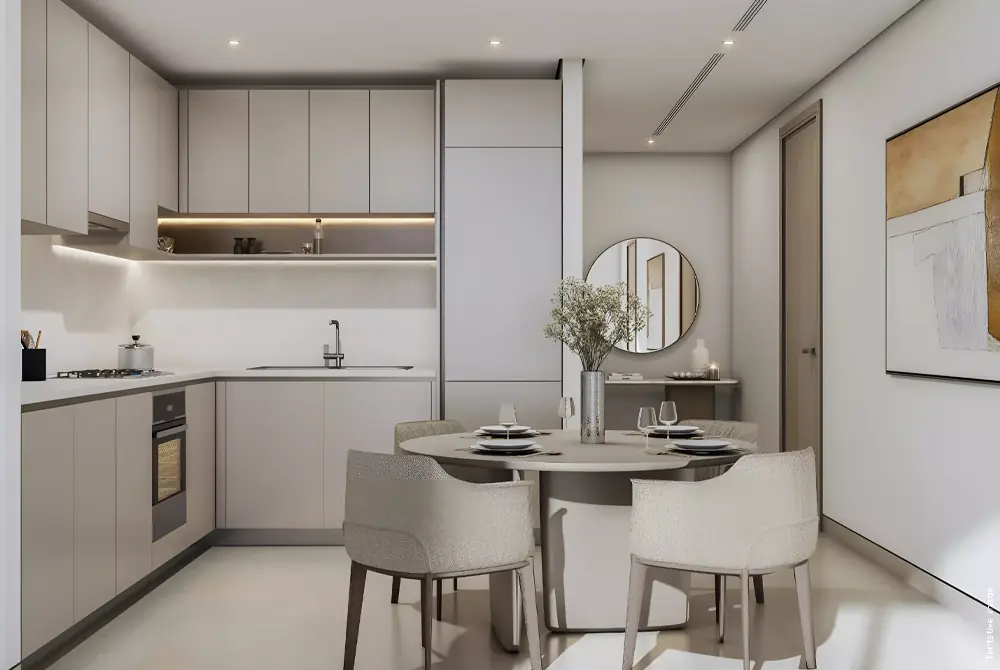 The masterplan of this residential development offers an exclusive elevated lifestyle within Sobha Hartland community, features a high-rise tower that is thoughtfully designed to maximise space, views and privacy. The bottom of this tower has a podium level dedicated to leisure and recreational activities. The design of this residential project seamlessly integrates lush green landscaped spaces with a modern environment creating a family friendly setting.