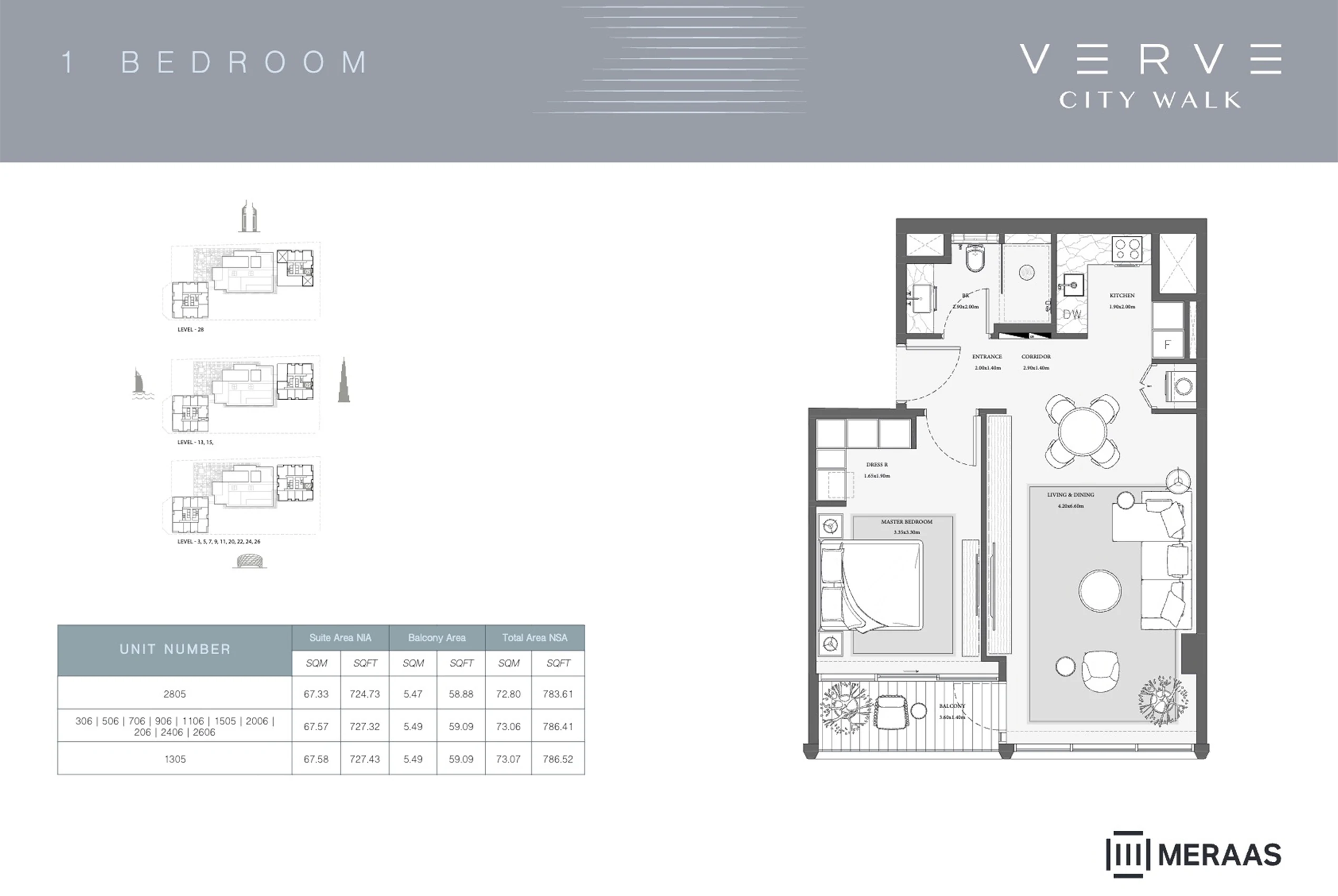 The floor plans at Verve City Walk by Meraas truly maximize living spaces. You’ll find smartly designed apartment units that make the most of every square foot. The floor plans are thoughtfully crafted to suit various lifestyles. Whether you prefer a spacious one-bedroom or a larger three-bedroom, each home allows natural light to fill the interiors. You’ll be impressed with how the floor plans incorporate light-filled rooms, generous storage areas, and stylish designer kitchens. The lavish living areas are perfect for entertaining guests or just relaxing at the end of the day. With high-quality finishes throughout, the bathrooms and bedrooms provide the utmost comfort. Whether for work or play, dedicated zones ensure an ideal home layout.